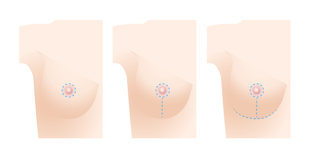 Periareolär (O-Schnitt um die Brustwarze): bei geringer Erschlaffung